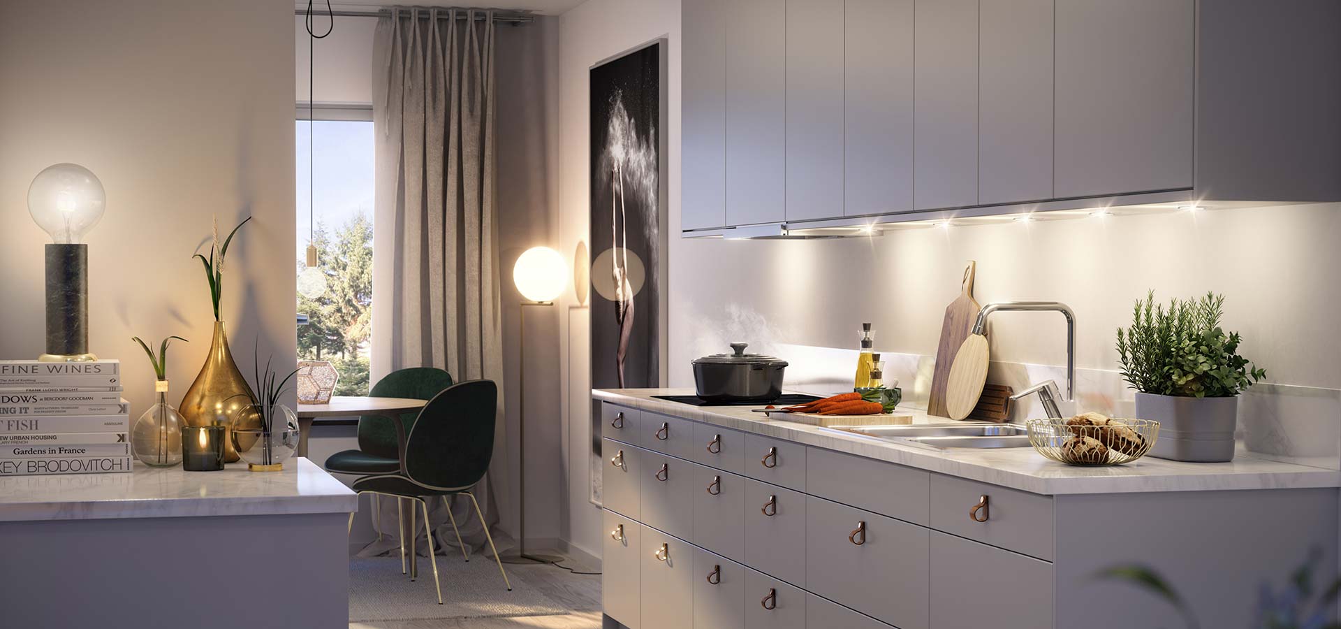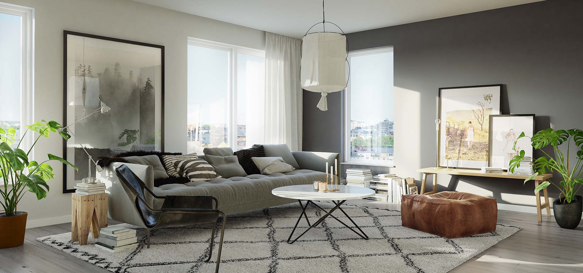 We transform your premises or your yet-to-be-built real estate project into an inspiring, photorealistic reality in 3D. With the help of 3D, we produce photorealistic images based on the architect’s drawings and we create, model and light according to your wishes, target group and drawing material.